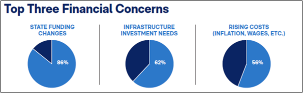 Achieving sustainable growth starts with fiscal sustainability. The “State of Local Government in Indiana: 2025 Report” finds that 86% of leaders are concerned about state funding changes, including those tied to Senate Enrolled Act 1, which restructures Indiana’s property tax system and significantly impacts local government revenues.